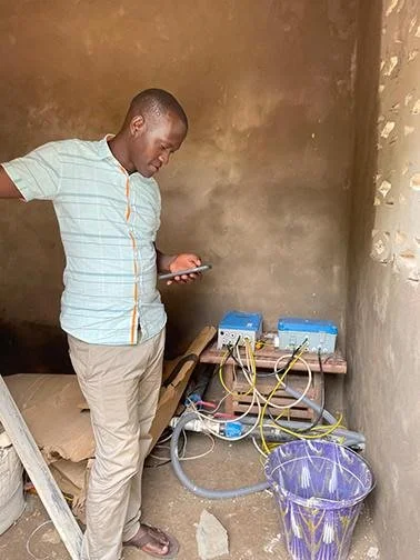 James, the project technical lead from Uganda, is examining the flow rate. On Saturday James ran the water most of the day to see how much can be produced. Friday, we pumped over 11,000 gallons in less than 3.5 hours.